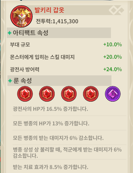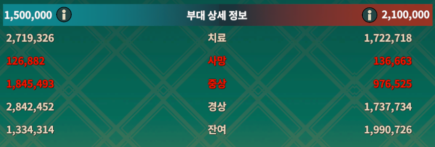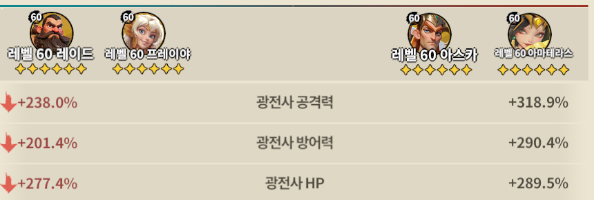 보고서에 부대 버프를 확인하면 위 수치들이 나옵니다.