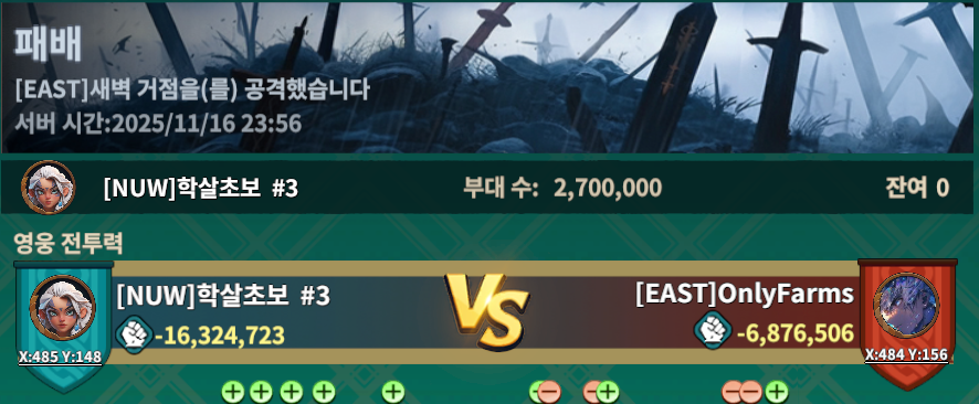 이전 다크님 집결 분석할때와 반대로 우리가 집결을 햇는데 우리가 피해를 더 많이 받았습니다.